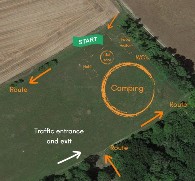 The camping area will be marked to the perimeter. You can park and pitch where you like within the camp area, but please keep your area contained. Camping for the weekend, Fri – Sun, is included with your event entry.